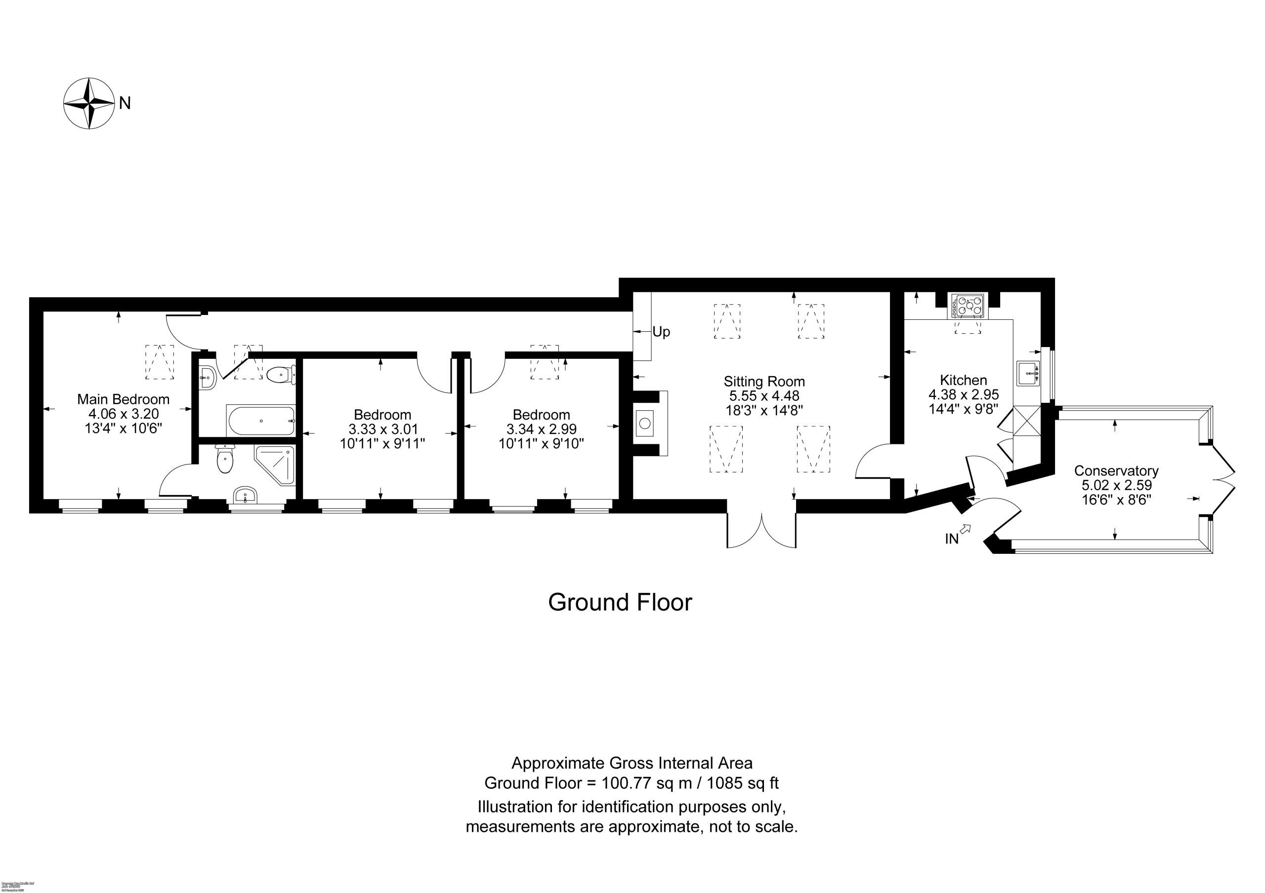 Bedroom Three 10’ 11” x 9’ 10” (3.34 x 2.99)